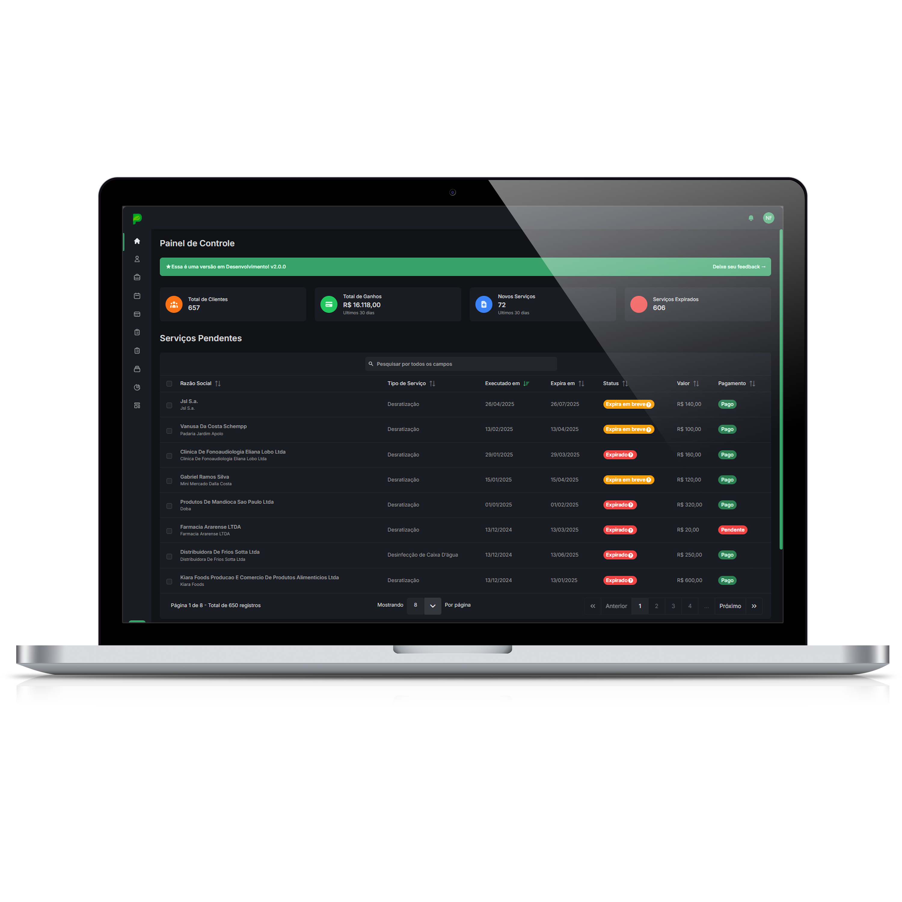 Definidas com o cliente e acompanhadas a cada sprint para garantir alinhamento e resultados.